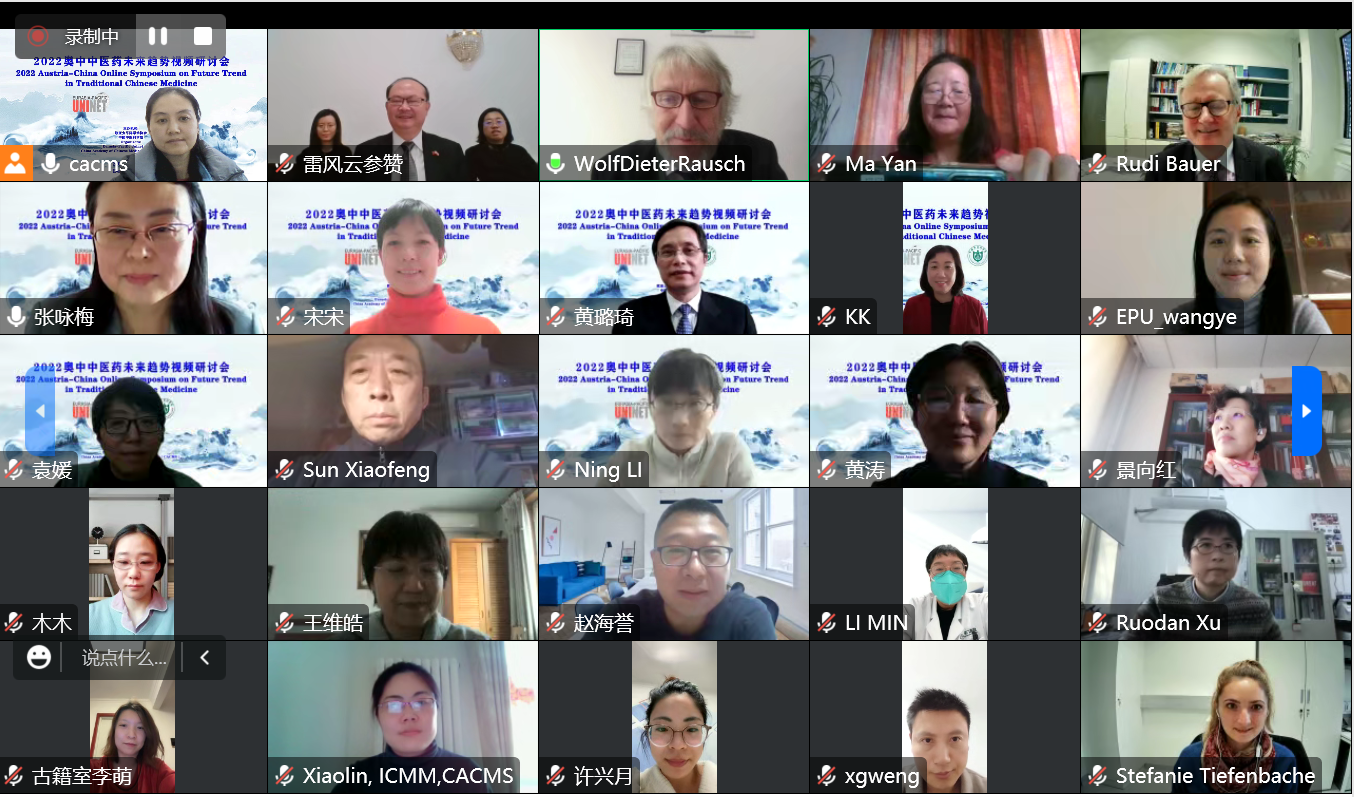 12月7日,由中国中医科学院与奥地利欧亚太平洋学术协会共同主办的“2022奥中中医药未来趋势视频研讨会”以线上会议形式召开。国家中医药管理局副局长、中国中医科学院院长黄璐琦院士、中国中医科学院副院长李鲲、欧亚太平洋学术协会主席劳施教授、奥地利中医药研究联盟负责人鲍儒德教授以及中国驻奥地利使馆科技参赞雷风云线上参会并致辞。来自奥地利及我院的专家围绕中医药当前研究和未来方向、中医药抗击新冠肺炎等主题进行学术交流和分享,40余名院属各单位的科研人员线上参会。