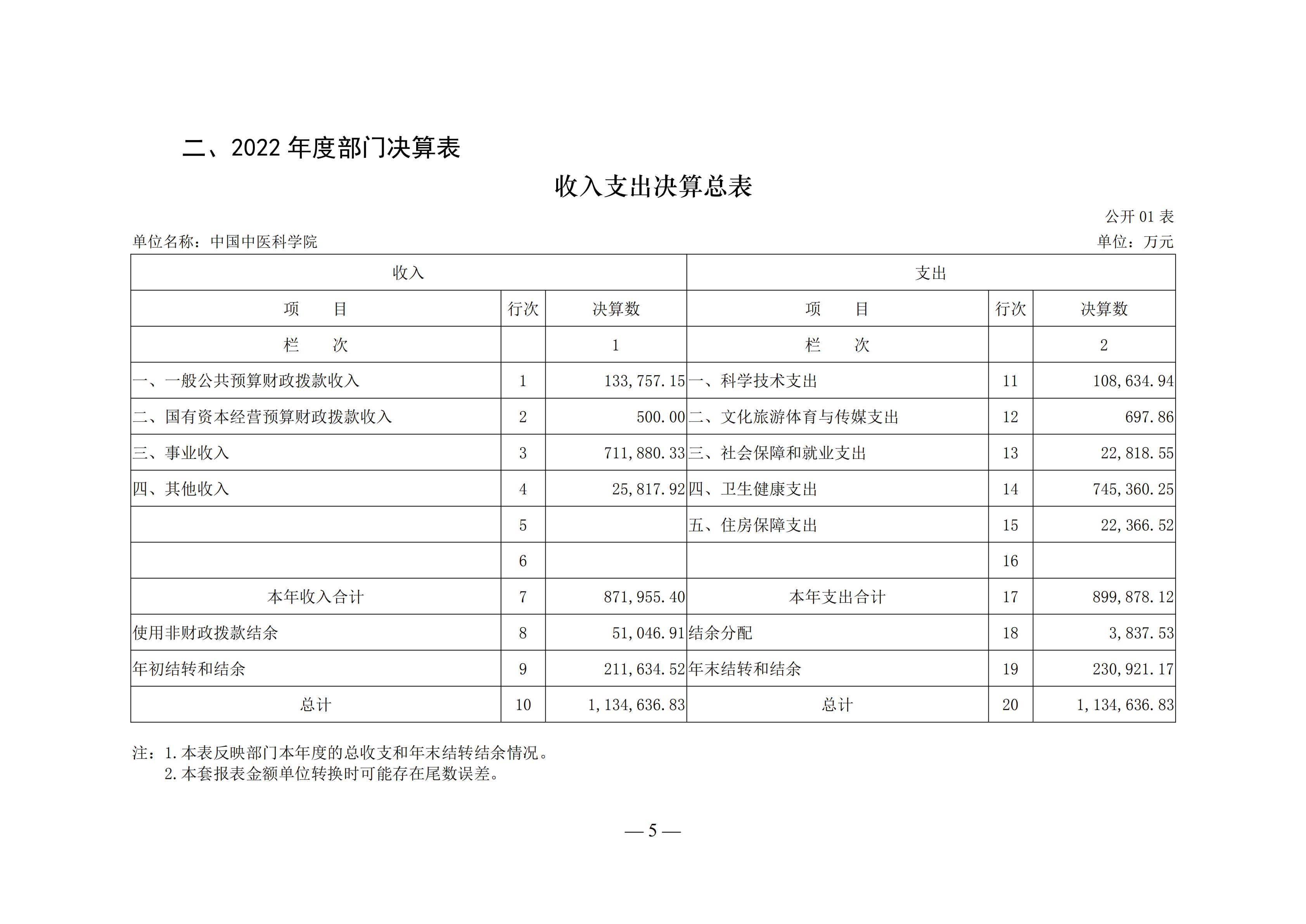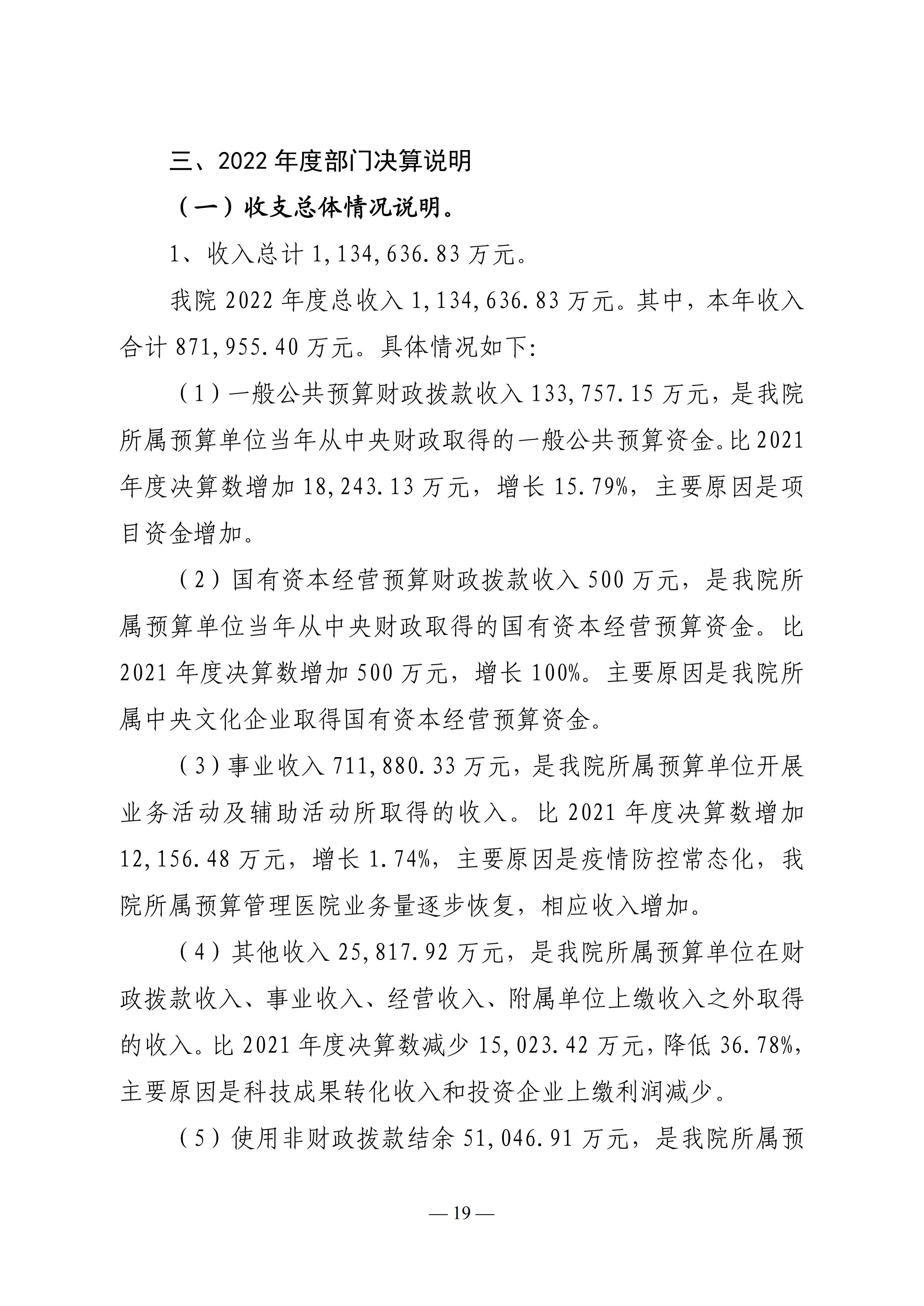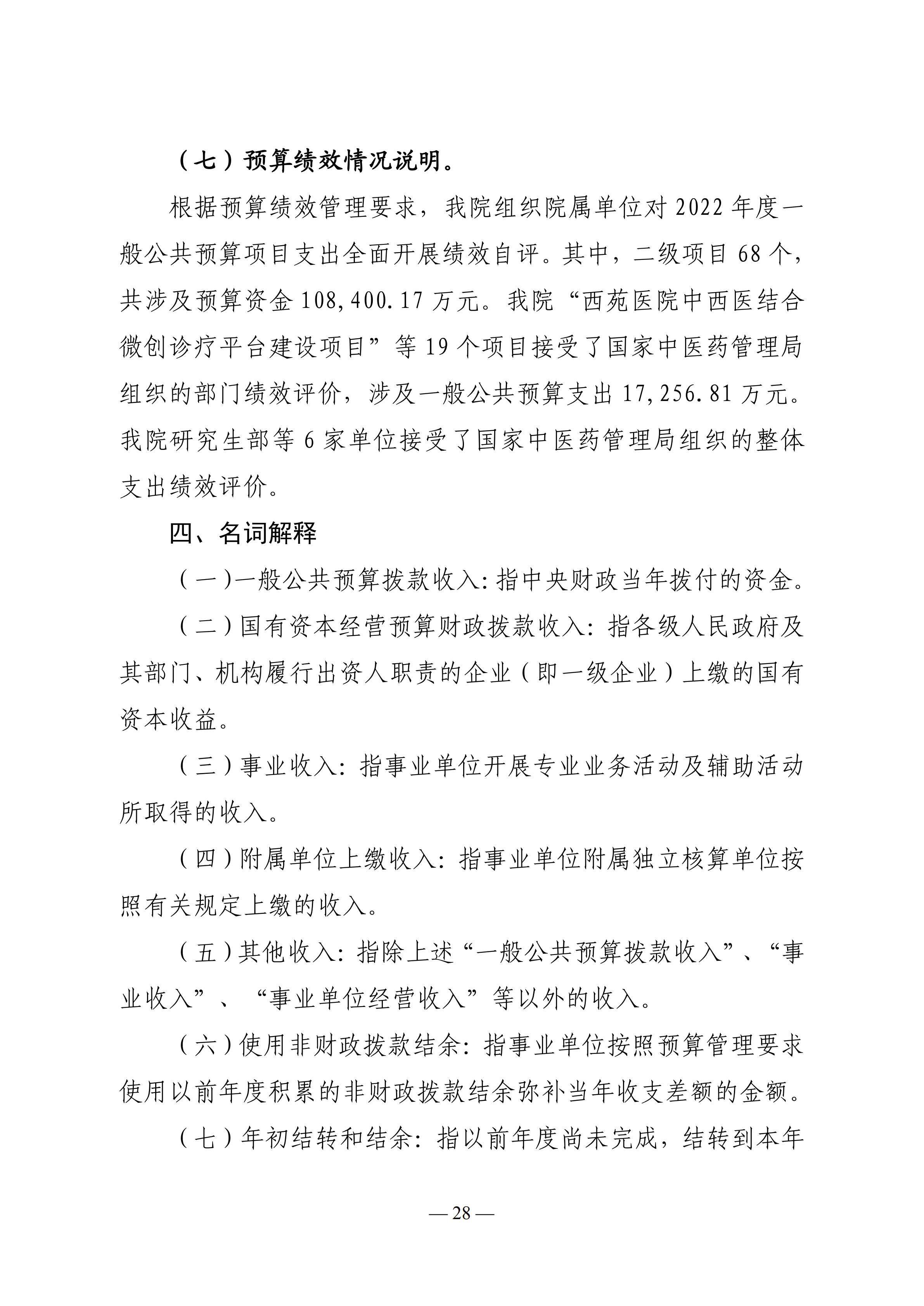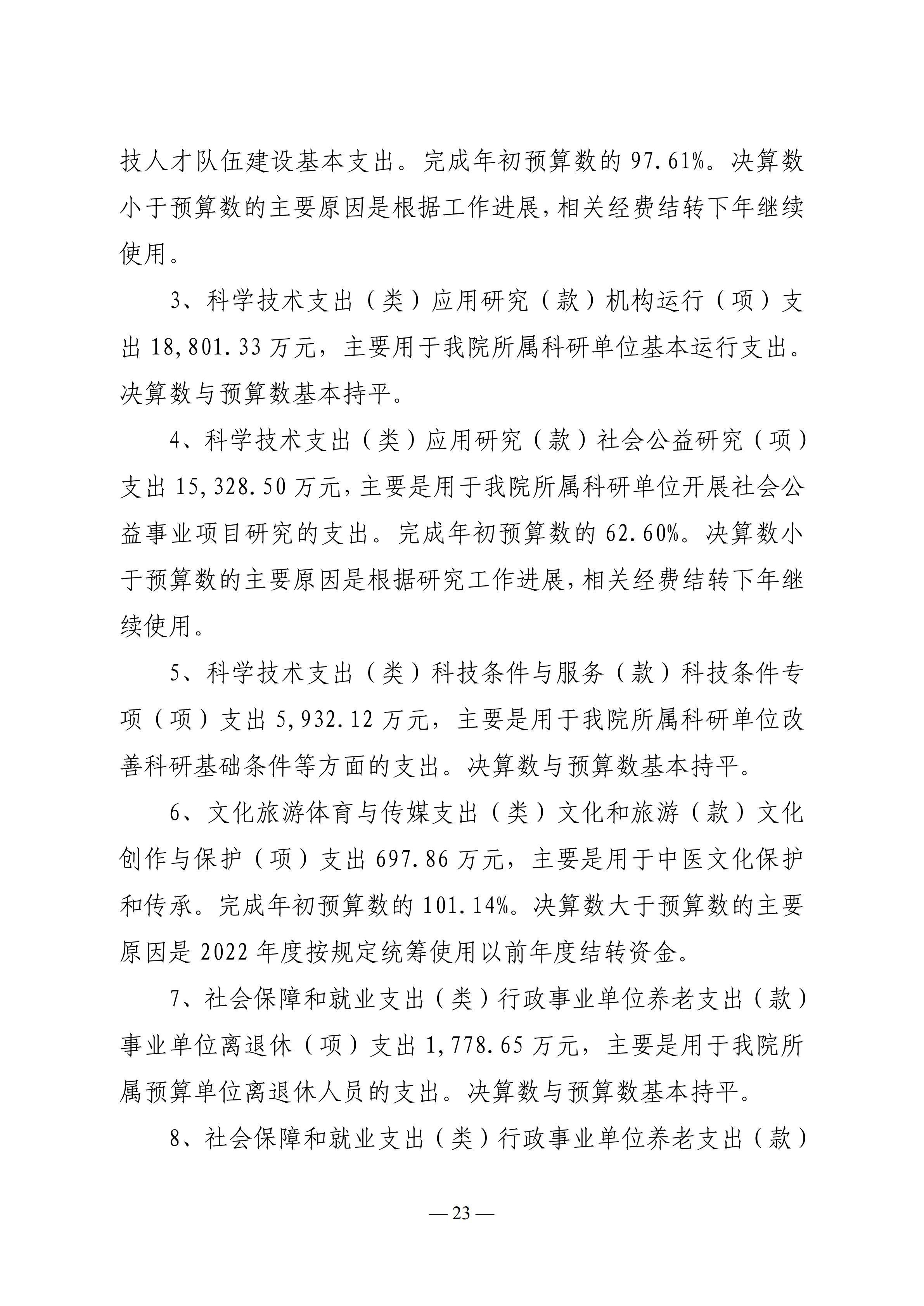 中国中医科学院2022年度部门决算