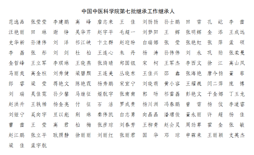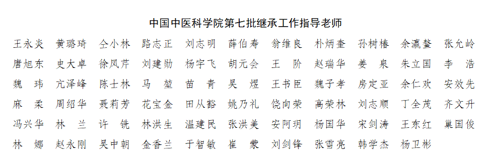 全国老中医药专家学术经验继承工作是贯彻落实《中共中央国务院关于促进中医药传承创新发展的意见》《关于加快中医药特色发展的若干政策措施》《“十四五”中医药发展规划》的重要举措,也是中国中医科学院“十四五”发展规划的主要任务。中国中医科学院自1990年开展全国老中医药专家学术经验继承工作至今已32年,先后遴选指导老师110余名,培养继承人350余名,第七批指导老师和继承人数量均达到有史以来最高峰,中国中医科学院作为中医药事业发展的“国家队”,将以此为契机,充分利用优势资源,提高中医药师承教育质量,加强过程管理,培养一批能够较好地继承掌握老中医药专家学术思想、临床经验与技术专长,中医药理论基础扎实、坚持中医原创思维、临床(实践)能力较强、具有良好医德医风的中医药骨干人才,为中国中医科学院“做大做强”提供有力人才支撑,为推进中医药传承创新高质量发展做出重要贡献。