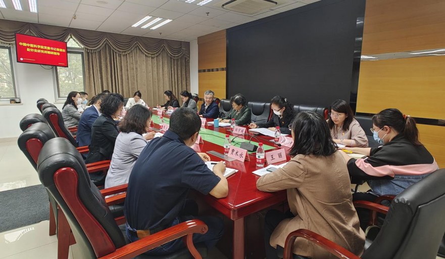 4月20日上午,中国中医科学院党委书记查德忠同志赴针灸研究所调研。针灸研究所所长兼党委副书记景向红、副所长陈淑萍、在职党支部书记及支部委员代表等相关人员参加调研座谈。