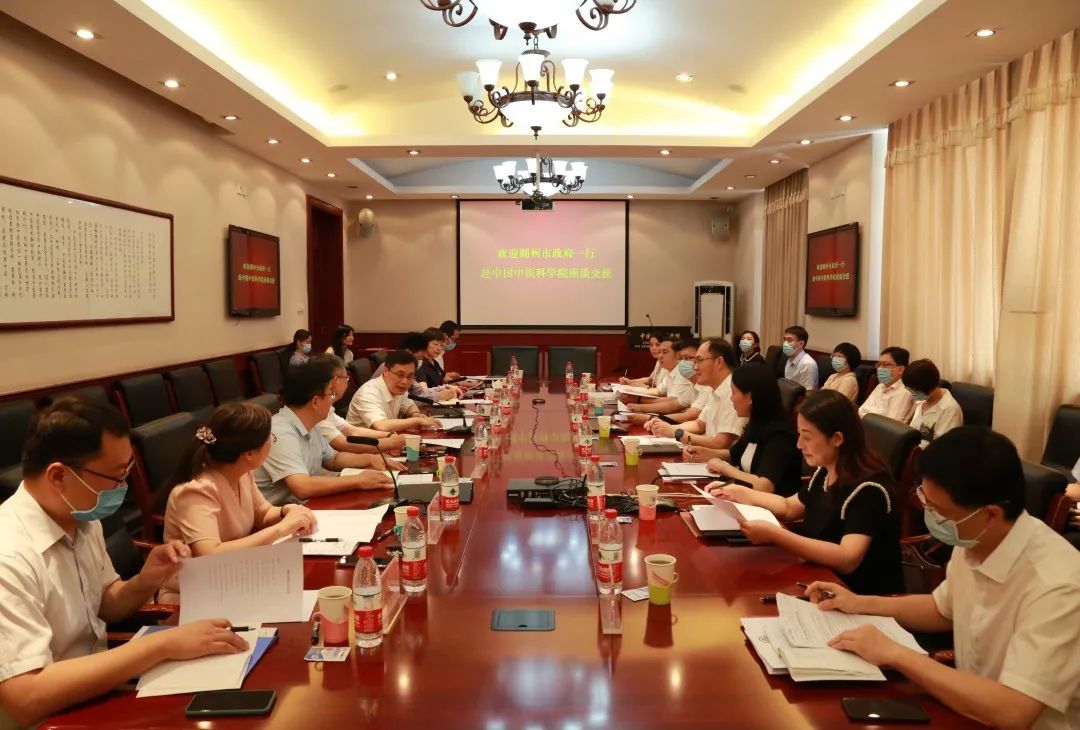 8月10日,湖州市人民政府一行来中国中医科学院交流名医堂试点建设等情况。湖州市市委副书记、市长洪湖鹏,副市长阮叶萍一行参加交流,中国中医科学院党委书记查德忠、院长黄璐琦院士、纪委书记于林勇等院领导参加交流。