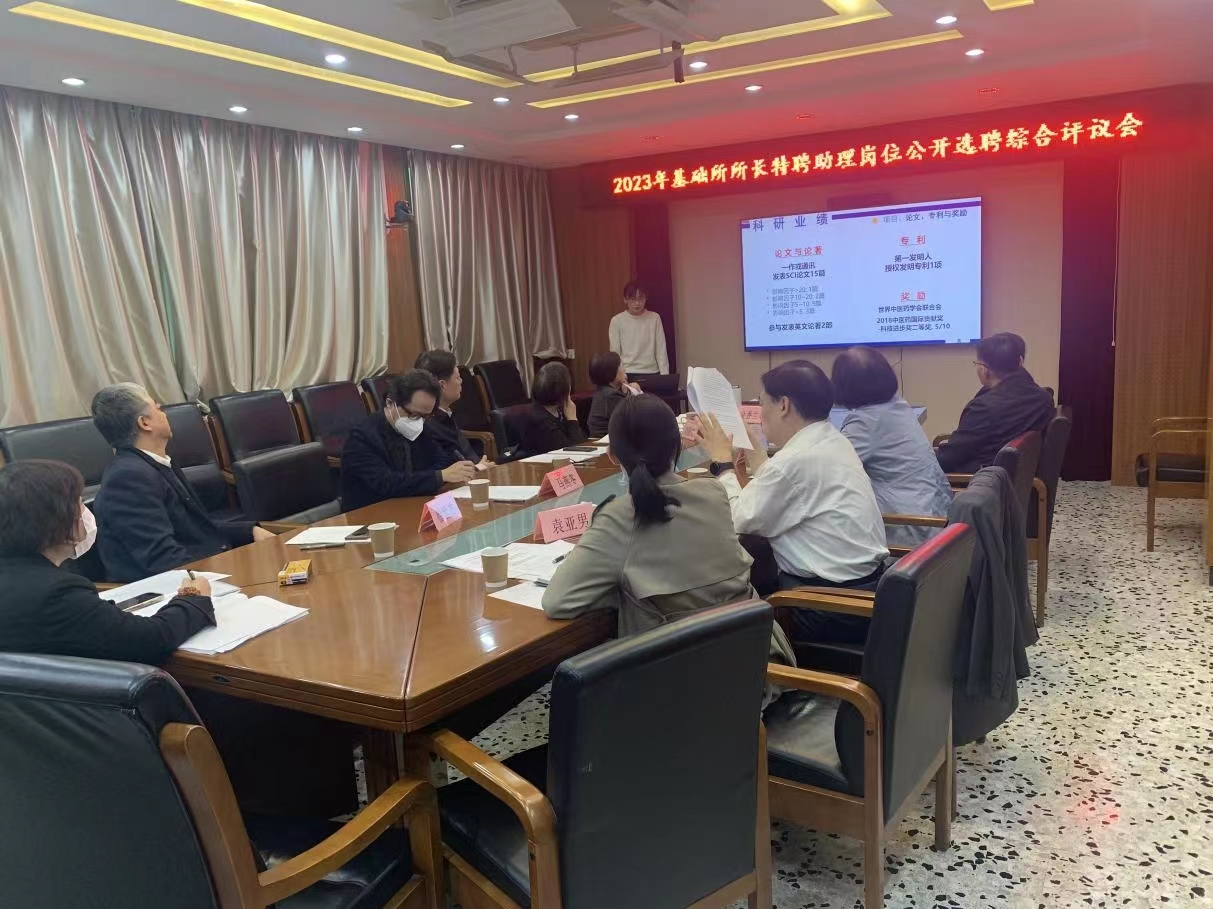 为深入贯彻党的二十大报告关于“人才是第一资源”“青年强,则国家强”的重要论述,落实全国中医药人才工作会议要求,根据中国中医科学院党委统一部署,2023年4月28日上午,中医基础理论研究所(以下简称“基础所”)召开了所长特聘助理岗位公开选聘综合评议会。会议邀请了涵盖中医基础理论、中西医结合基础、中药学及中医临床等多学科领域的所内外专家组成了评议专家组。基础所领导班子成员参加会议,院人才工作专班、院内兄弟单位人事部门人员以及基础所相关人员列席会议,所纪检监察审计室负责人全程监督。