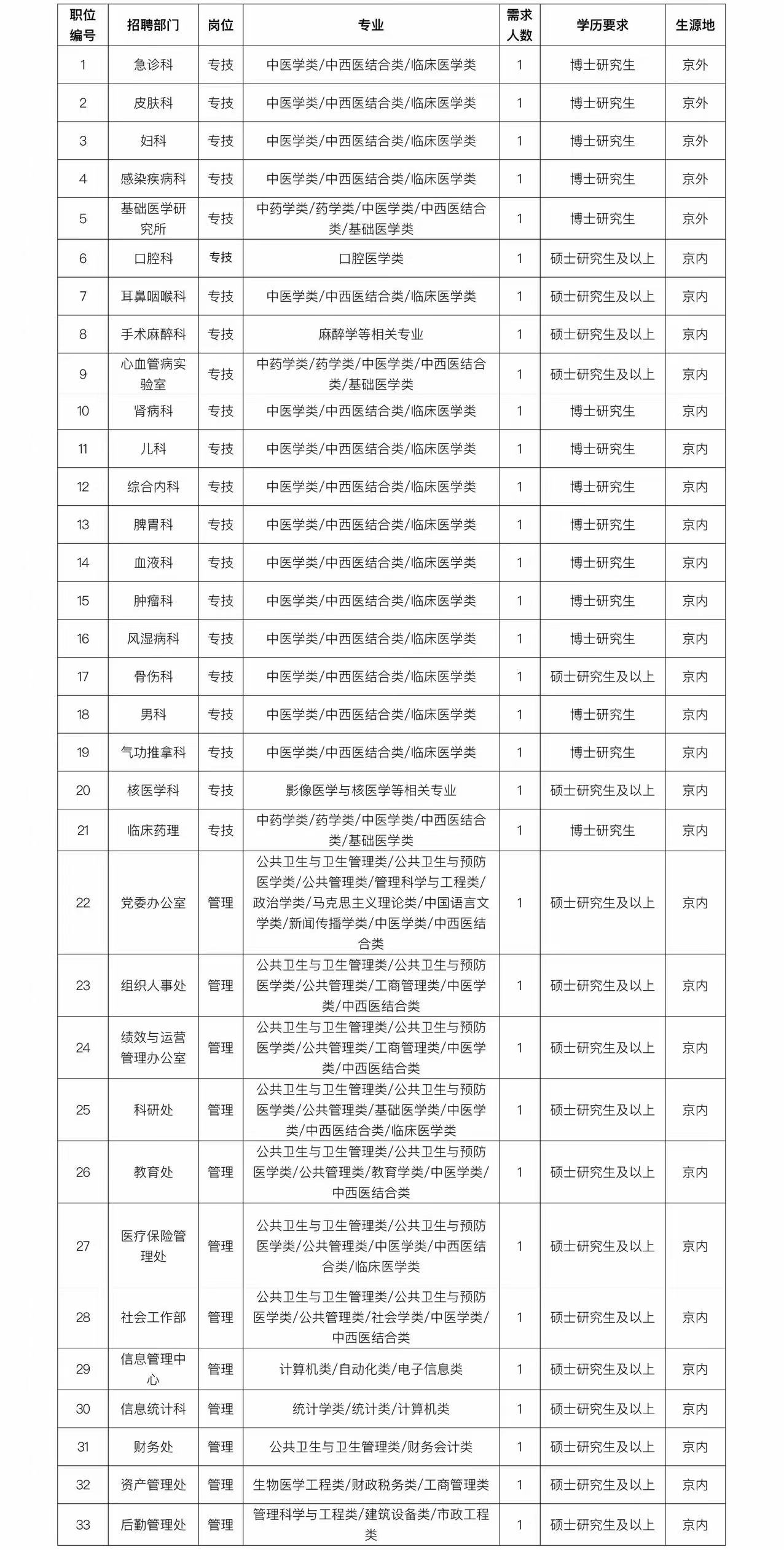 根据工作需要,2024年中国中医科学院西苑医院公开招聘应届毕业生33名(正式批)。现将有关事项公告如下: