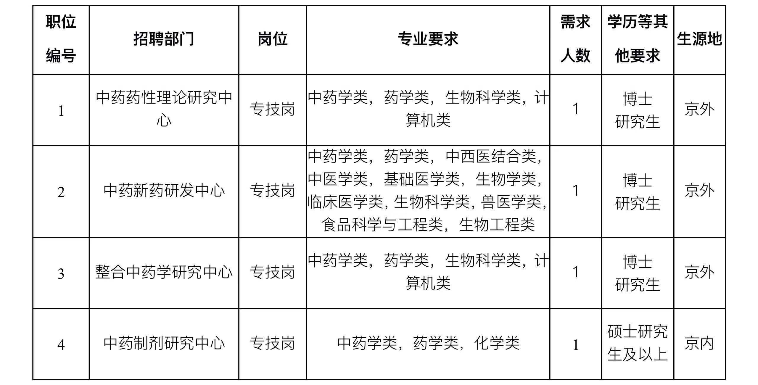 根据工作需要,2024年中国中医科学院中药研究所公开招聘工作人员4名。现将有关事项公告如下: