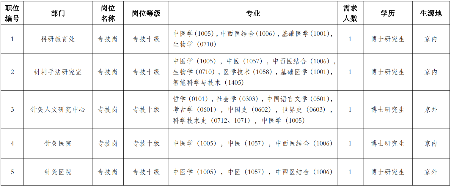 根据工作需要,2026年中国中医科学院针灸研究所公开招聘应届毕业生5名(第二批)。现将有关事项公告如下: