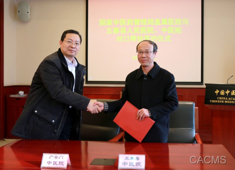 为进一步落实精准扶贫、精准脱贫基本方略,落实健康扶贫的重要举措,根据《国家中医药管理局五寨县定点扶贫工作计划(2017-2018)》的要求,12月30日,中国中医科学院四家医院分别与山西省忻州市五寨县人民医院、中医院签订对口帮扶协议,中国中医科学院党委书记王炼出席并主持了签署仪式。
