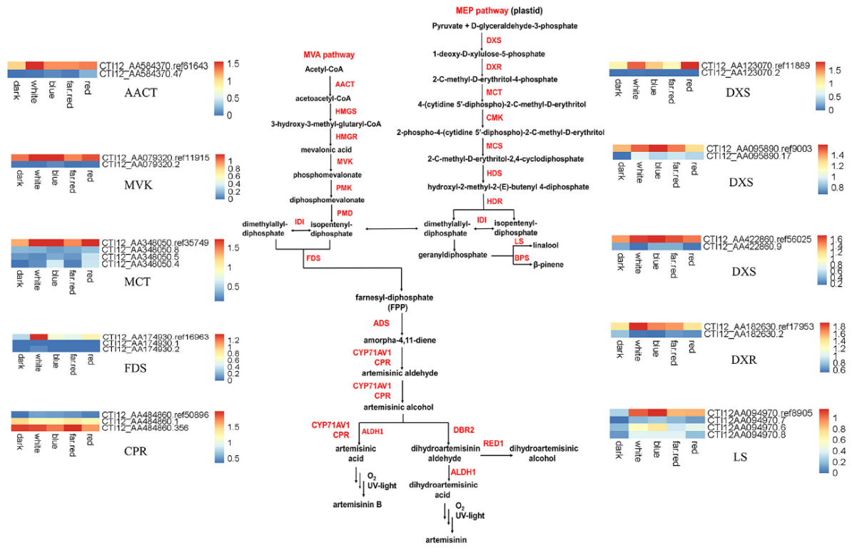 黄花蒿(Artemisia annua L.) 是抗疟一线药物青蒿素的唯一天然来源。然而,野生黄花蒿中青蒿素的含量很低。随着青蒿素及其衍生物新适应症的大力开发,如双氢青蒿素片治疗免疫性疾病系统性红斑狼疮等,对青蒿素资源的需求必然会显著提升。目前,青蒿素的市场供应还依赖于从黄花蒿中提取。因此,研究黄花蒿中青蒿素生物合成的调控机制对提高青蒿素产量有重要意义。