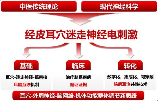 团队提出了“脑病耳治”新学说,开展多中心随机对照临床试验,明确了taVNS治疗癫痫、抑郁症的临床疗效,证实经皮耳穴(心、脾)电刺激治疗24周可显著抑制难治性癫痫发作,总有效率75%;开展随机单盲临床试验,证实经皮耳穴(心、肝)电刺激治疗8周可明显改善患者汉密尔顿抑郁量表评分,总有效率61%,与手术植入式迷走神经刺激和临床一线抗抑郁西药疗效相似,且副作用少、安全性高、持续时间长,为“脑病耳治”新学说提供高等级循证医学证据,是中医传统疗法临床经验、西医评价标准与循证医学证据相融合的成功实践。