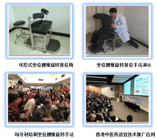 研发腰椎斜扳手法培训系统及可控式坐位腰椎旋转复位椅,解决了腰椎扳动类手法难以评价、操作复杂的实际问题;建立了腰椎斜扳手法培训系统,首次采用力学测试方法量化腰椎手法操作,明确了核心力学参数,保证手法操作规范性。同时研发可控式坐位腰椎旋转复位椅,简化了传统坐位腰椎手法的操作流程,并增加坐位固定的稳定性,有利于手法规范和推广应用。