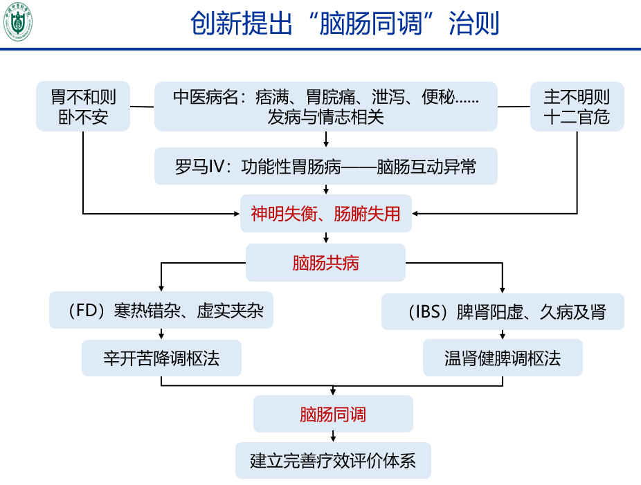 1.创新提出“脑肠同调”治法,证实中医药“脑肠同调”可有效缓解FD和IBS患者消化系统、精神心理症状,并围绕脑-肠轴部分揭示了该治法的疗效机制。