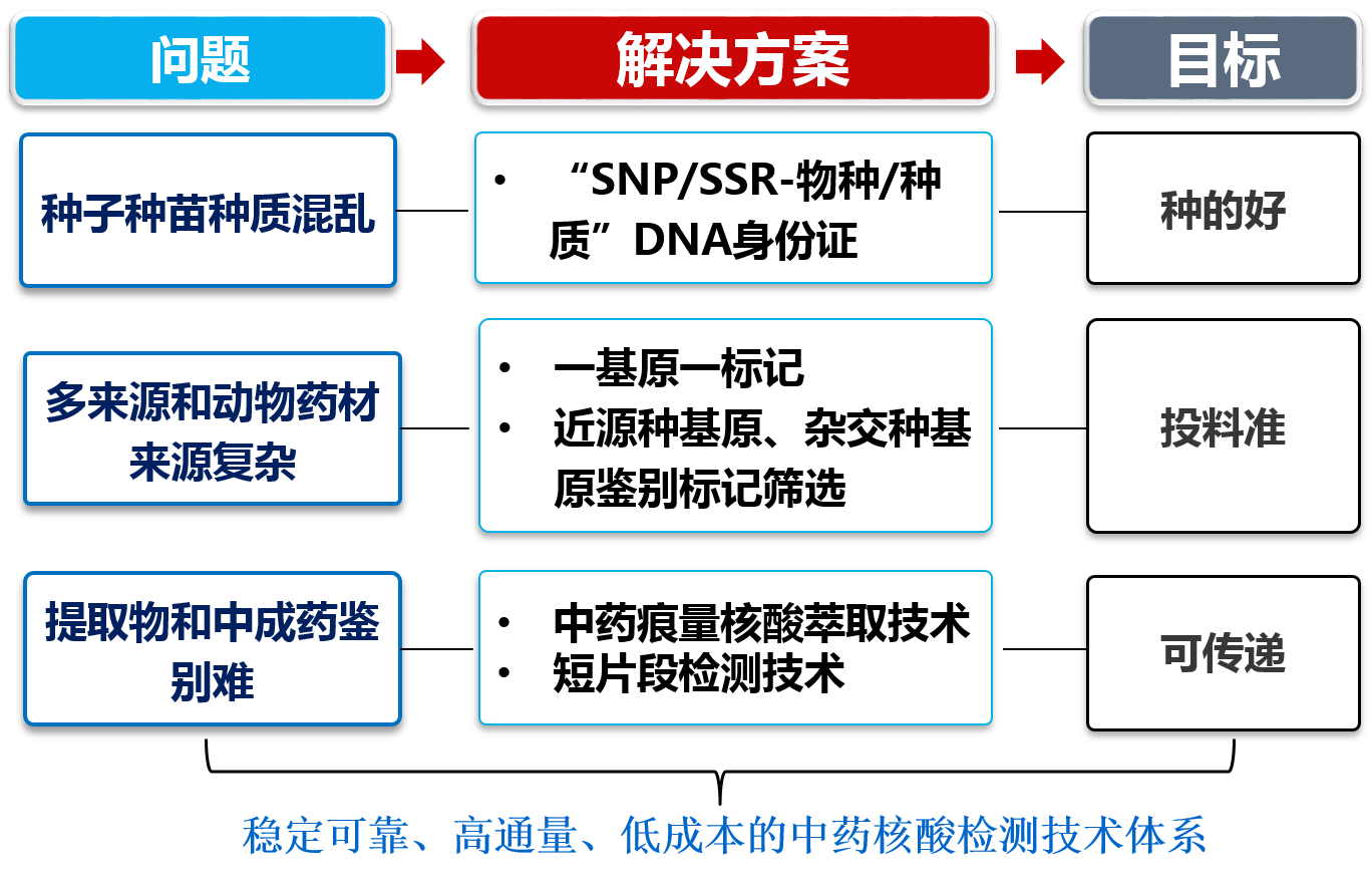 中药真实性鉴别是保障安全用药及中药产业健康发展的前提条件,中药核酸检测技术具有客观、准确、专属性强的优点,是保障中药真实性的重要手段。自2010版《中国药典》收载第一个蕲蛇PCR鉴别方法起,至2020版《中国药典》收载第一个分子生物学检查法通则《聚合酶链式反应法》,三版药典见证了以特征性DNA片段为核心的中药核酸检测技术体系的构建及其在中药质量控制中发挥的重要作用,成为中药鉴定领域中西医结合的典范。中药生产过程复杂、品种来源众多、质量控制难度大。本项目在上述工作基础上,在中医药行业科研专项、国家药典委项目等资助下,针对种子种苗、药材和饮片、配方颗粒和中成药3类中药质控对象及其鉴别难点,构建了稳定可靠、高通量、低成本的模块化中药核酸检测技术体系,并形成3种鉴别应用系统,保障中药材“种的好”、“投料准”、中药质量“可传递”。