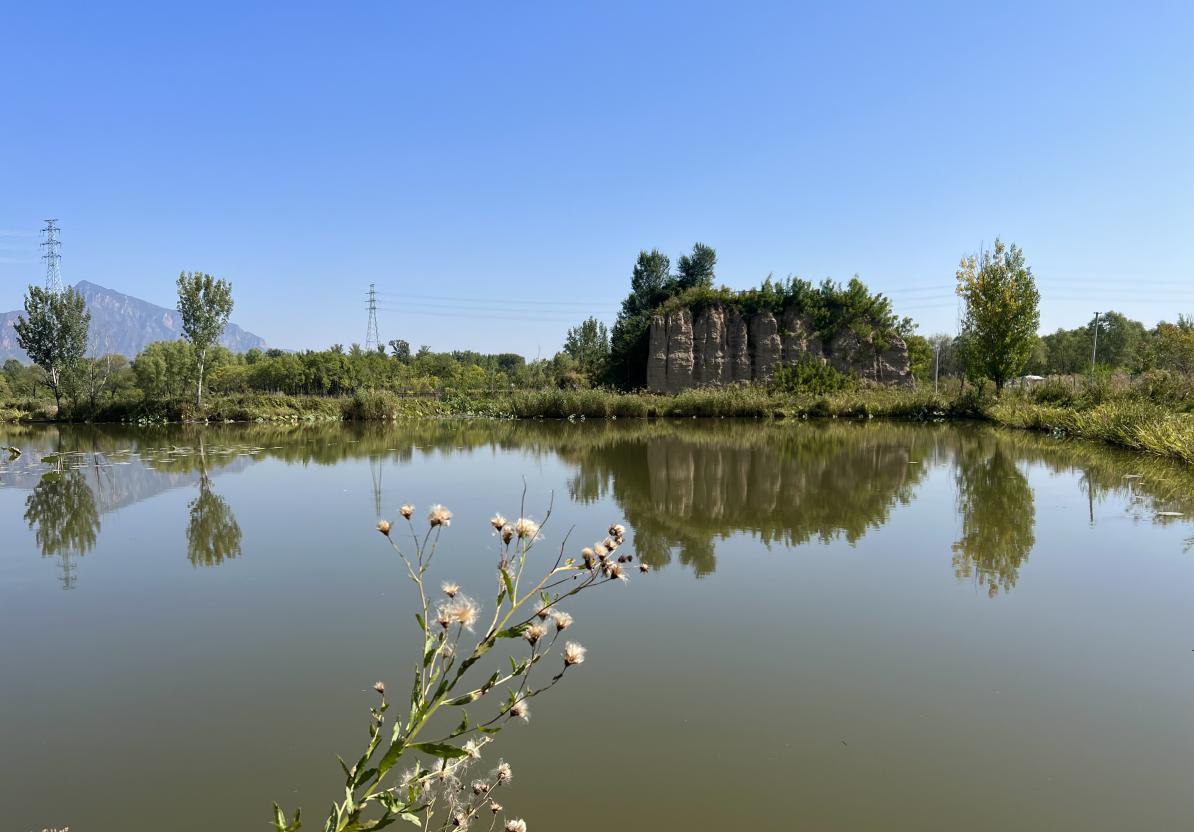 今天天气晴朗,虽已过秋分,中午时还是有些热。今天的开始部分是田间小道,道路两旁都是大片的玉米地,玉米都已成熟,正是收获的季节,不少人在地里劳作。这条线路以前走过,快到阪泉体育公园时,路边是大片的湿地,上次来时可以看到较大的水面,而今天却见曾经的水面上满是杂草,感觉是疏于管理了。在水面的远处,有一座烽火台遗址,称为下阪泉楼。进入公园内,便沿着步道行走,顺着曲曲弯弯的步道,一直走到稻田,稻子即将成熟,金黄一片。