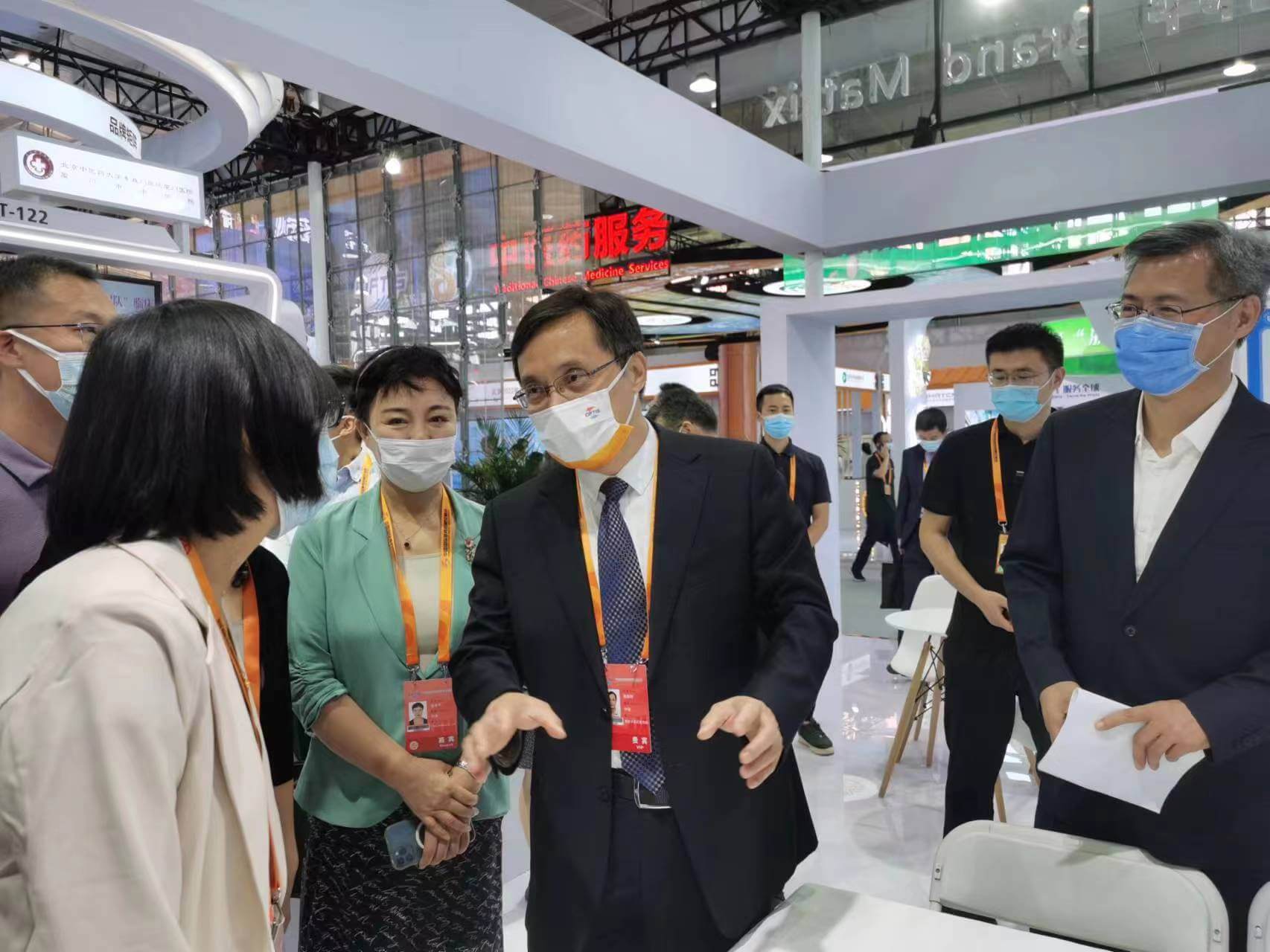 9月1日,中国中医科学院在北京首钢园2022年中国国际服务贸易交易会中医药展区的展览开展,国家中医药管理局副局长、中国中医科学院院长黄璐琦院士莅临展区参观指导。